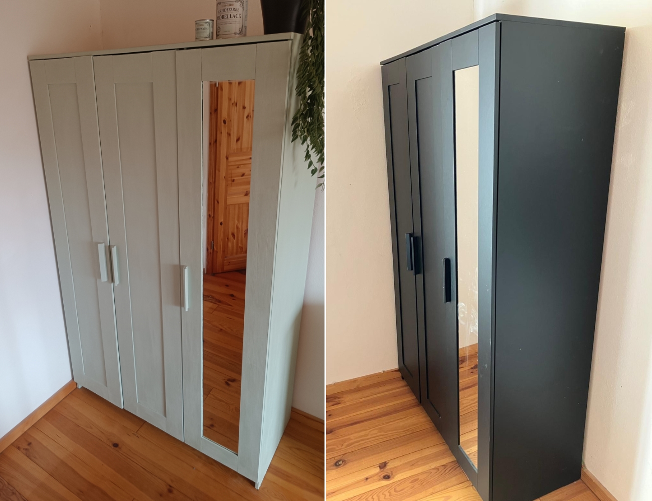 Petra hat ihren schwarzen Kleiderschrank komplett verwandelt. Mit unserer Kreidefarbe in dem Farbton „Lorbeer Grün“ wurde aus schwer & dunkel ein echtes Highlight mit Leichtigkeit.