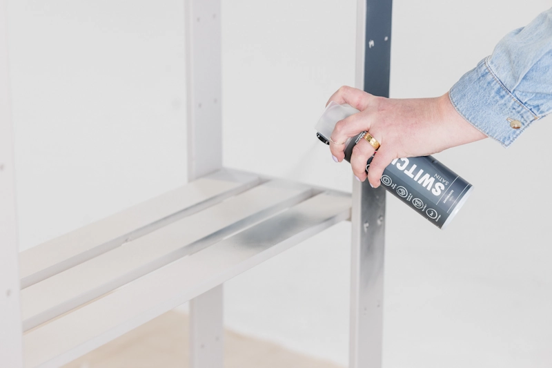 Reinige die Oberflächen deines Regals gründlich von Schmutz und Verunreinigungen, bevor du mit dem Ansprühen beginnst.