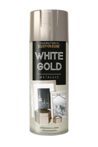 Die Rust-Oleum Metallic Sprühfarbe Goldweiß ist ein moderner Metallic-Ton für Ihre Einrichtungsprojekte.